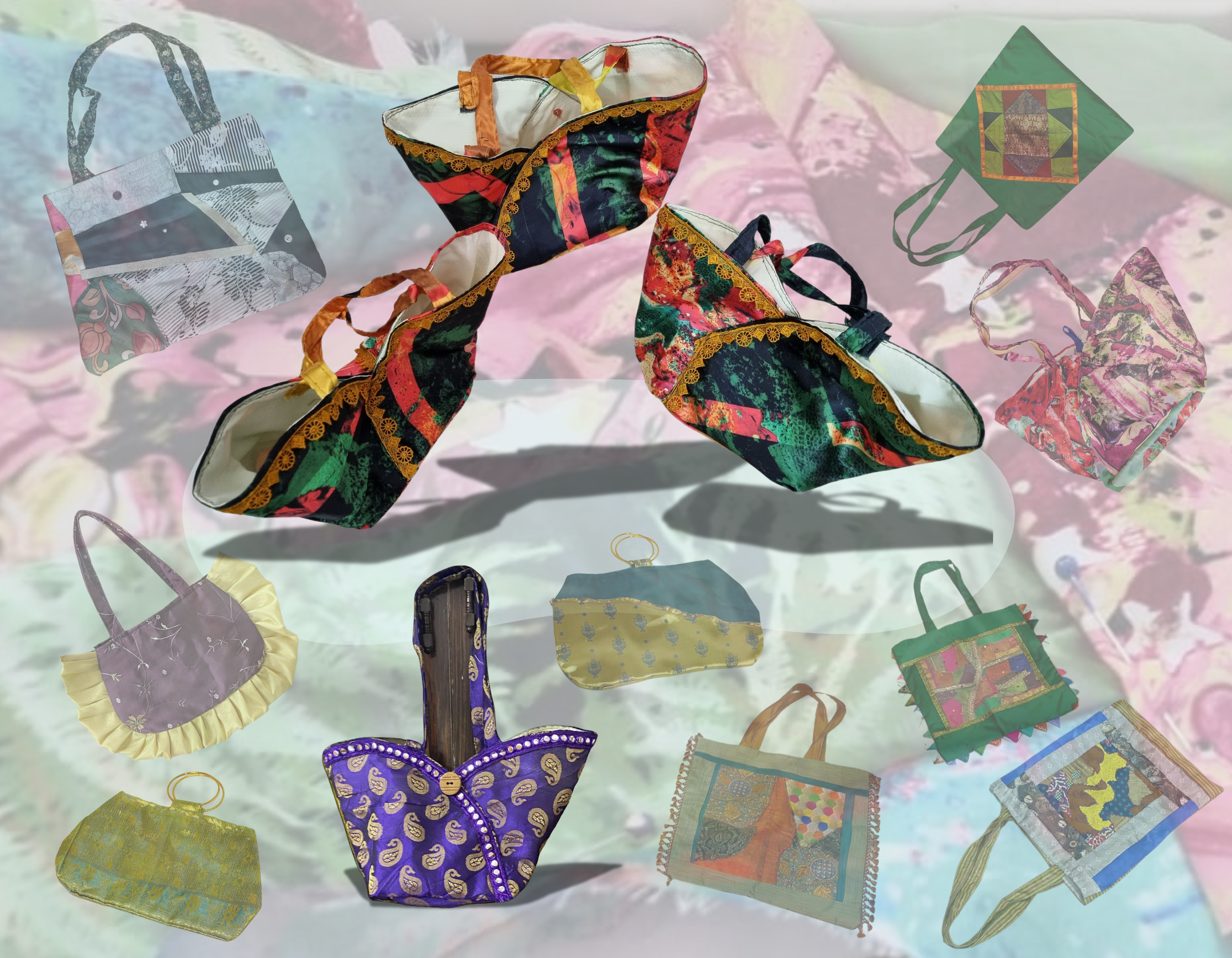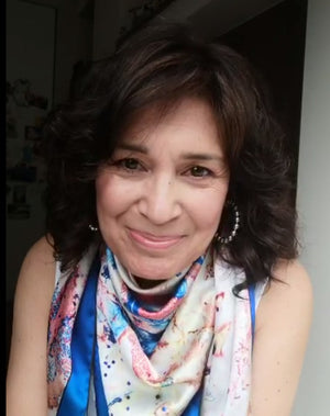 How our every painting acquires new life taking the form of a beautiful scarf; a 'mantra' wrap, an artistic vest, a patchwork bag, a colorful scrunchy and much more. We use only sustainable and natural materials for our apparel such as 100% natural silk, ´eri´non-violent silk, recycled textiles, etc., giving our apparel as much care as we give, our original artwork.